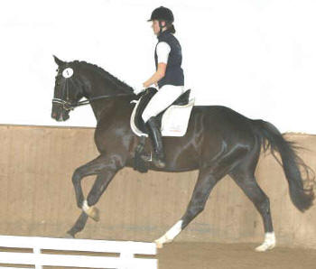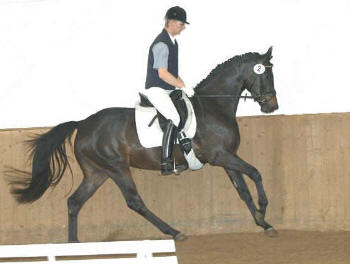 | 3. Platz u. beste 3-jährige Stute "Grace Note" Trakehner Rappstute, geb. 29.5.2003 v. Alter Fritz u.d. Gloriette III v. Kostolany u.d. Gavotte v. Karon u.d. Gurtis v. Pregel Z.: Bernhard Langels, Schäplitz Bes.: Christine Williams, Victoria/Canada |