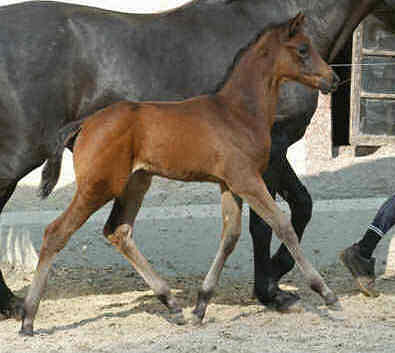 Schwarzbraunes Trakehner Stutfohlen von von Freudenfest u.d. Agatha Christie v. Showmaster u.d. Arancha v. Marduc Züchter: Karl-Heinz Kriwet, Bad Pyrmont