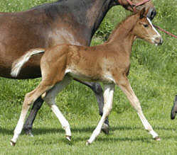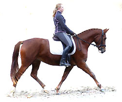 Bewegungsstarke Freudenfest-Tochter mit erstklassigem Interieur. Prämienstute des Trakehner Verbandes Bewertung: Typ: 7,5 Gebäude: 7,0 Fundament: 8,5 Schritt: 8 Trab: 7,5 Galopp: 7,0 Gesamt: 8,0 Ausgezeichnet als beste 4jährige und ältere Stute der zentralen Stuteneintragung im Zuchtbezirk Rheinland 2008 Die Stutenleistungsprüfung legte sie mit der Note 7,5 in Münster-Handorf ab. Am 18.09.2008 wurde sie in Wickrath mit der Staatsprämie ausgezeichnet. |